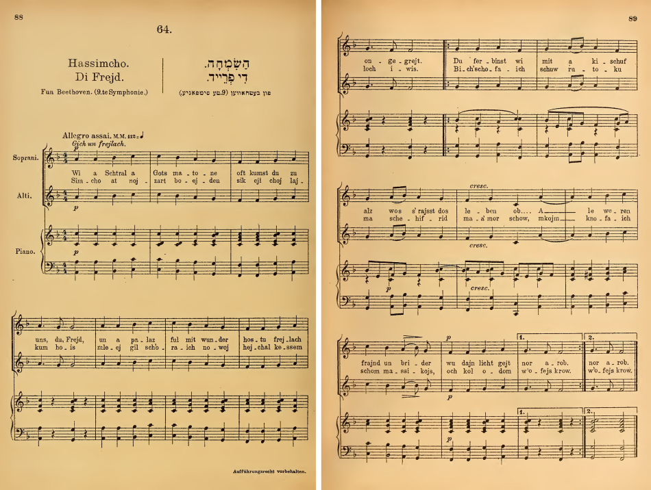 Join us on April 20 for an evening celebrating Beethoven in the Yiddish imagination including performances of these works, a bilingual reading of a Yiddish story about the Moonlight Sonata, and, of course, Ode to Joy in Yiddish translation. Performances feature Allen Lewis Rickman, Yelena Shmulenson, Mario Diaz-Moresco, Spencer Myer, and the Ulysses Quartet.