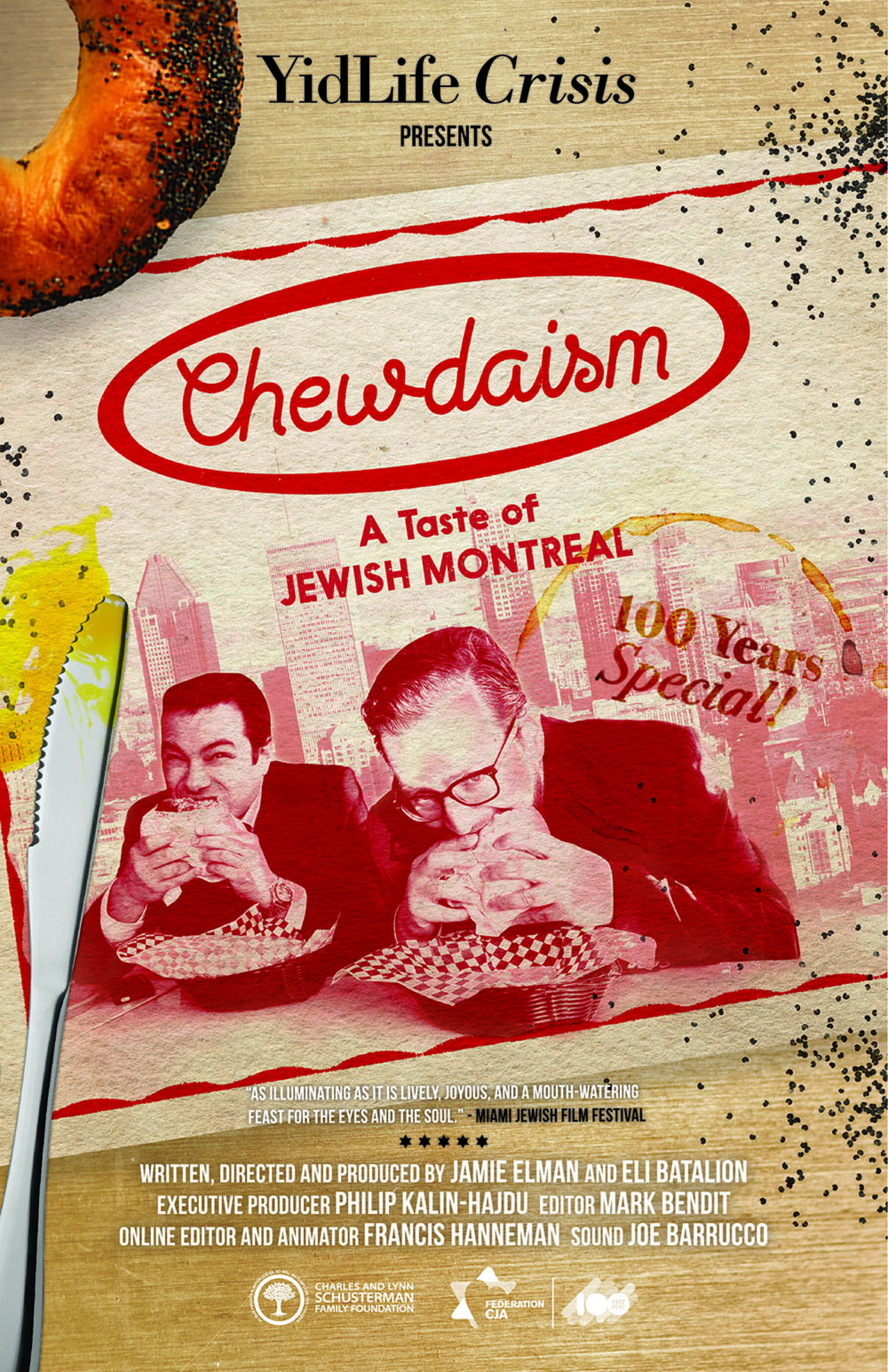 CHEWDAISM: A Taste of Jewish Montreal is an hour-long documentary following Eli Batalion and Jamie Elman of "YidLife Crisis" fame as they discover the roots of Montreal's Jewish community through a series of classic Jewish eateries. As they tell this story, Batalion and Elman encounter various guests along the way, sharing tales and meals during a day's worth of eating in and around the city.