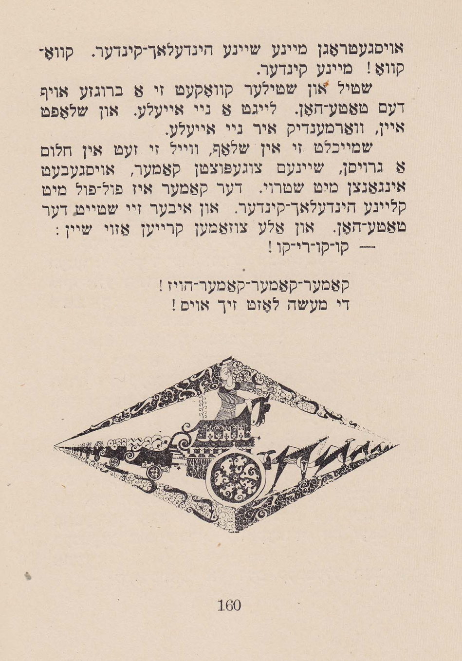 Those who illustrated Yiddish children’s books often produced brilliant work, and some had exemplary careers in the fine arts. A few of them were cartoonists, and others painted theater sets. Many of their illustrations can also be found in Yiddish periodicals and literary journals. With their small pen and ink contributions, these sometimes unheralded artists brought an aesthetic sensibility to the cramped spaces of Yiddish newspapers and magazines. Their work in Yiddish children’s books, unknown to many today, is often stunning and unique.