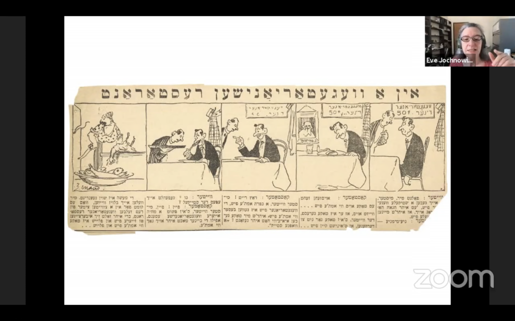 Eating Right and Left: Food and Political Alignment in the Yiddish PressAired: June 29, 2020Lecture | Eve Jochnowitz examines what values Yiddish writers in Europe, the Americas, and Palestine considered “liberal,” and how they saw food practices. Part of the 2020 Yiddish Civilization Lecture Series. (Delivered in Yiddish)