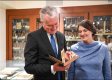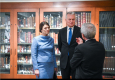 The President and First Lady viewed an array of materials from YIVO’s Library and Archive, including the Pinkas of Rabbi Elijah ben Solomon Zalman’s, synagogue. Rabbi Zalman, known as the Vilna Goan, was an outstanding Lithuanian rabbi and religious leader.