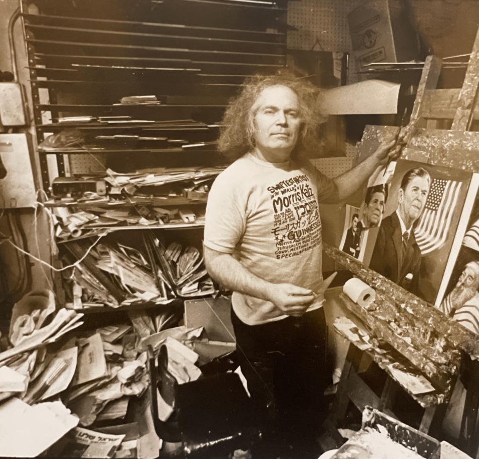 Called “a self-contained vaudeville act” by New York Magazine, Katz holds a unique place in the annals of the art world as a painter who not only worked with incredible speed—whipping up paintings within just minutes—but who did so while engaging his audiences with Borscht Belt-style shtick and then auctioning the paintings off to all comers. Although none of his art reached critical acclaim, he became a minor celebrity and appeared on numerous television shows, among them those of Mike Douglas, Joe Franklin, Alan Thicke, and Rich Little, whose light mockeries he endured as part of his act. He also had his own public access show and published a book on “how to paint fast and good,” which taught the secrets of his unique style in typically jovial Katzian fashion.