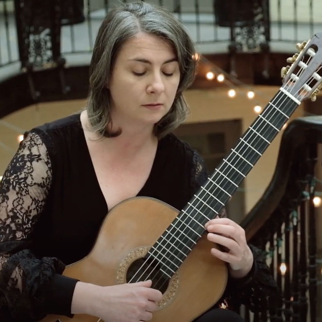 Zoë Johnstone Stewart is a performer and educator in the Baltimore area. She is a founding member of the Atlantic Guitar Quartet, and her recent solo engagements include a performance with the Annapolis Chamber Orchestra, the Annapolis Chorale, Marlow Guitar International, the Naval Academy Band Recital Series with oboist Emily Madsen, and as part of the Baltimore Classical Guitar “Made In Baltimore” concert of new works for guitar. She is currently Chair of the Preparatory Guitar Department at the Peabody Institute, Director of Fret Fest and Summer Guitar Intensive, instructor of Guitar Pedagogy at Peabody Conservatory, and in 2023 received the Preparatory’s Excellence in Teaching Award.