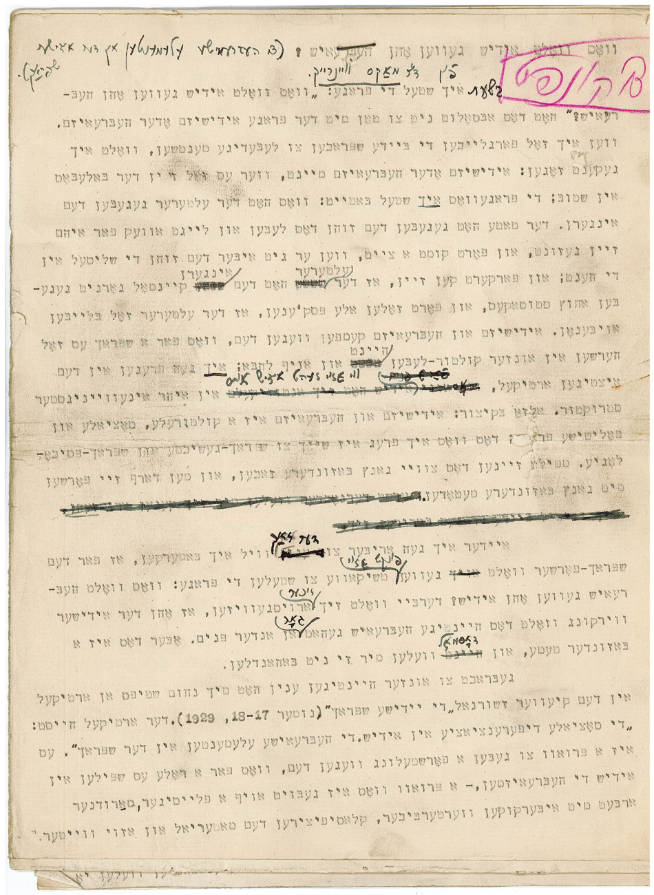 When modern Yiddish literature burst onto the scene during the second half of the 19th century, its writers used pen and ink to write everything from brief poems to thousand-page novels. At the turn of the 20th century when Yiddish versions of a new invention called the “typewriter” began to appear, many writers dropped their pens and began using these new machines, which were able to crank out texts more quickly and, importantly, more legibly.