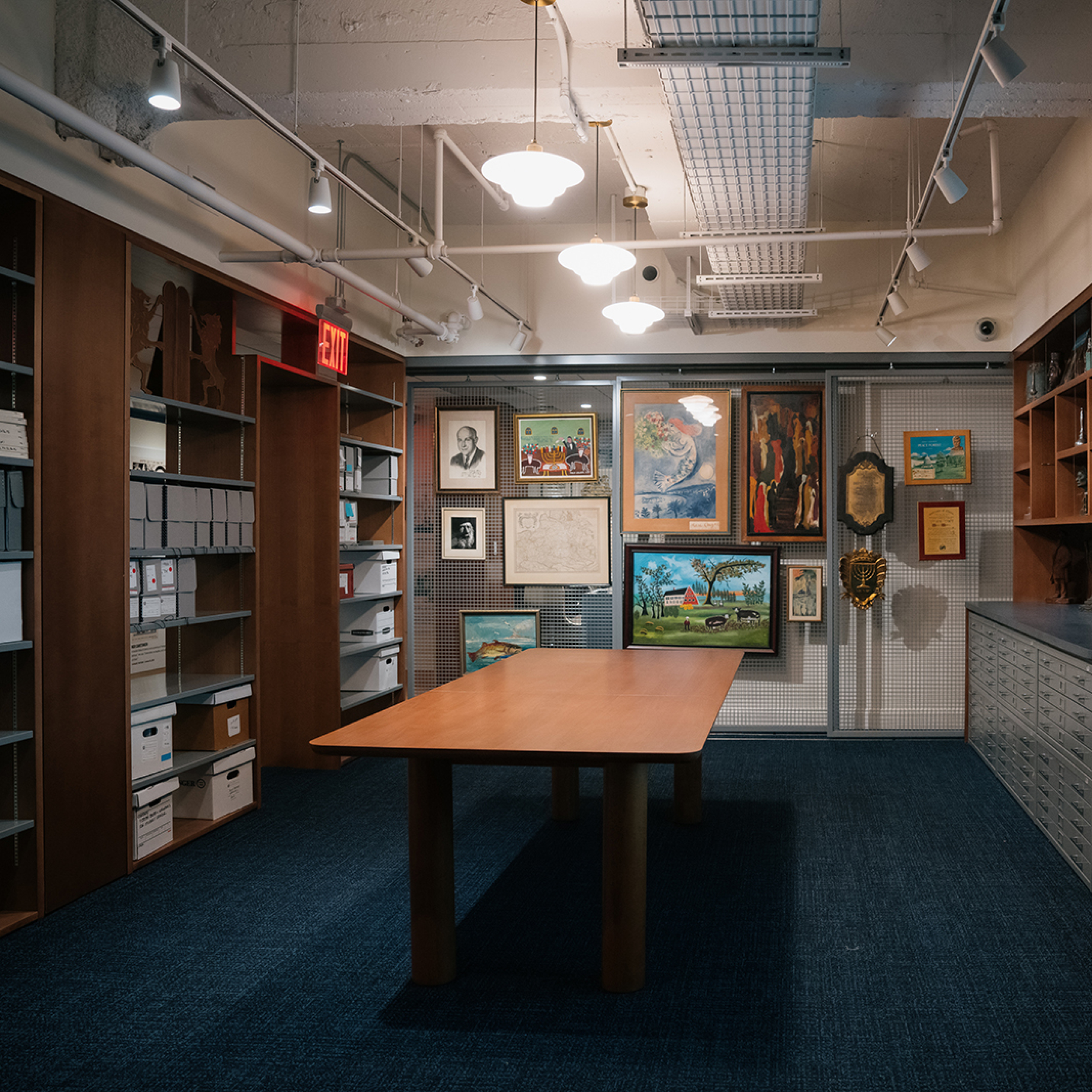 The space features a striking welcome vestibule highlighting photographs and objects from YIVO’s storied history, artifact displays from the YIVO Archives and Library, interactive activities like a poster-making station and a touch-screen map featuring hundreds of photos of Jewish life in Eastern European towns and cities, an intimate open-stacks library with Yiddish and English books, multimedia stations for listening to sound recordings and watching videos from the YIVO Collections, and a classroom for lessons that utilize rare archival materials.