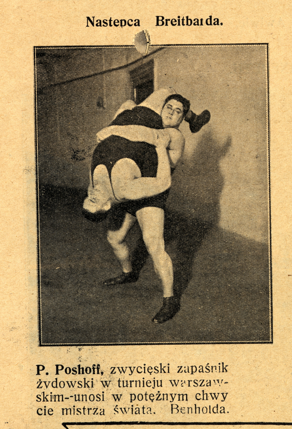 The reality, as Grinboym proved, is that Yiddish is actually quite rich in the physical realm where Jews supposedly feared to tread. Little known to the intellectual classes, fighting words were the rhetorical domain of the undocumented and disdained subclasses of Yiddish speakers; blacksmiths, butchers, porters, wagon drivers, and others who worked with their hands and bodies, who fought with each other and anyone else that dared cross them. Some channeled their fighting prowess into more organized frameworks and joined sports clubs. By the interwar period, professional wrestling and boxing had become very popular among Jews -- as both fans and athletes.