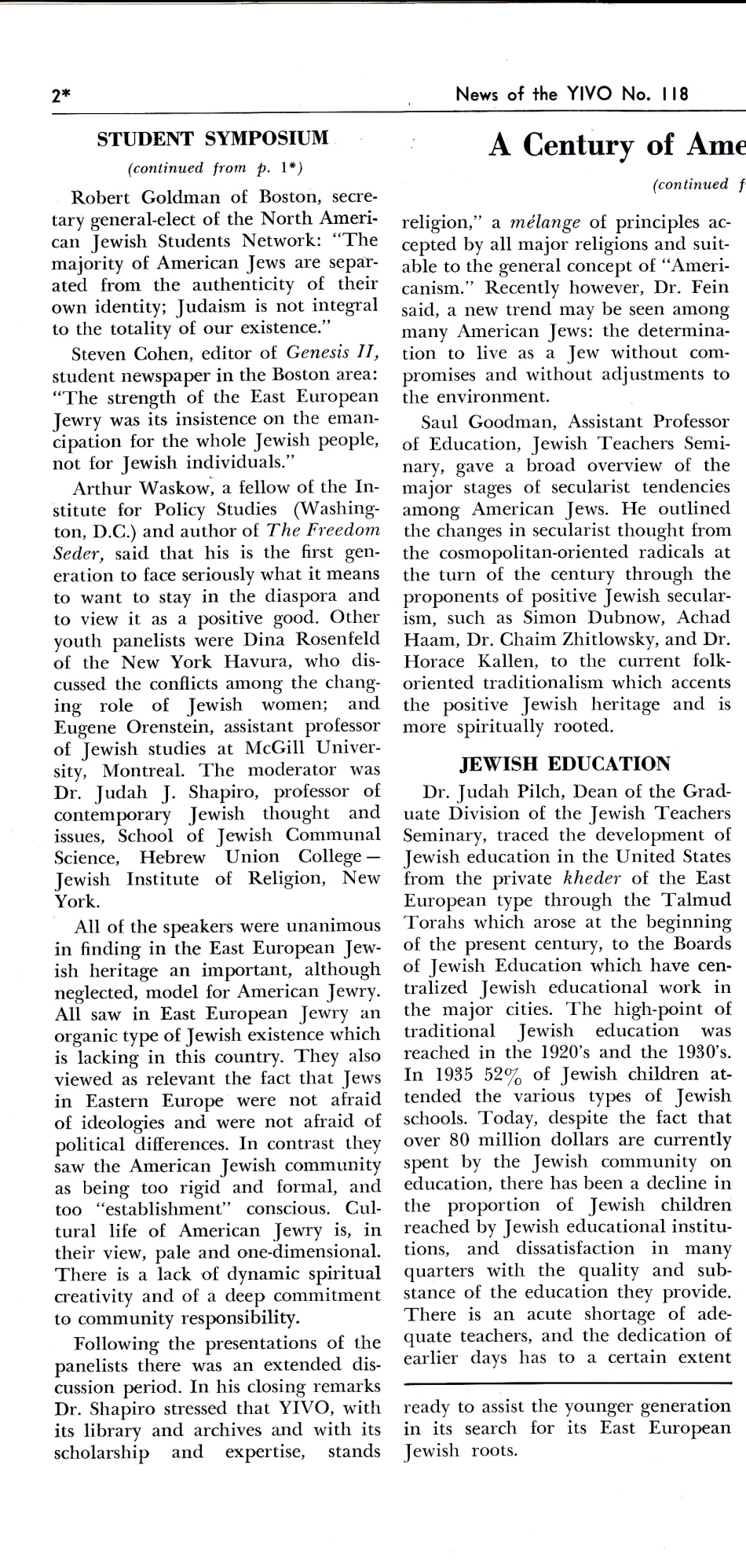 In 1971, YIVO’s Annual Conference had, as its focus, the past hundred years of Jewish life in the United States. This was no strictly celebratory look at American Jewish history and culture, however. On the contrary, Yedies reported that many of the papers delivered at the conference commented on a “malaise” in American Jewish communal life, supposedly resulting from the fact “that no new model for authentic Jewish identity has been created to replace the one brought over by East European Jews and discarded by later generations.”